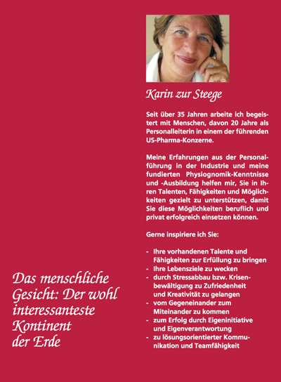 Mein Coaching auf Augenhöhe, gestützt von der Physiognomie, sichert langfristig persönliche und geschäftliche Erfolge. "Denn das menschliche Gesicht ist der wohl interessanteste Kontinent der Erde."